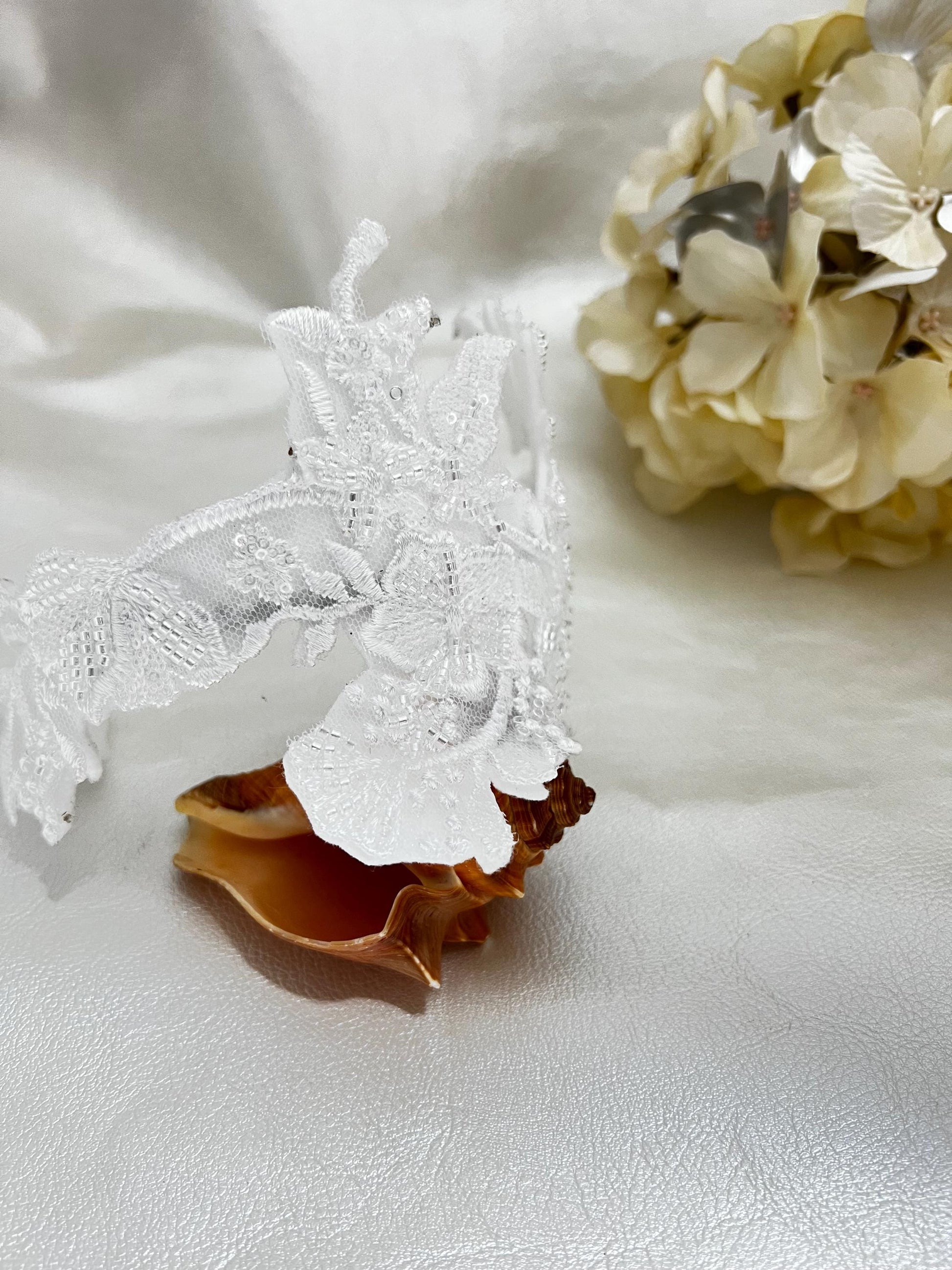 Enhance your wedding day look with this stunning bridal Venice lace headband, designed to exude elegance and charm. Crafted with exquisite attention to detail, this headband features a delicate white Venice lace flower and leaves. Its lightweight, flexible design ensures all-day comfort, while the adjustable fit accommodates various hairstyles, from loose waves to classic updos.